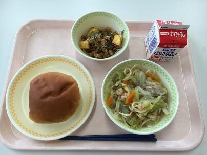 ミルクパン、牛乳、ちゃんぽん、小魚と大豆の揚げ煮