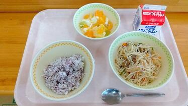 麦ごはん、紀州汁、千切り大根の卵とじ、牛乳