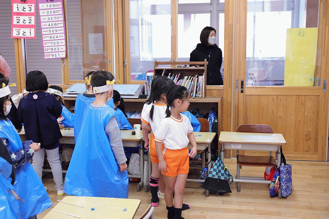 3校時に押方保育園・木の花幼稚園・光寿保育園の年長さんを招待して「たかちほっ子まつり」を開きました。これは、生活科の学習の一環として、幼保小連携の一環として実施したものです。