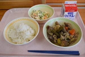 麦ごはん、筑前煮、ポテトサラダ、牛乳