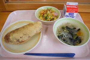 揚げパン、春雨スープ、りっちゃんサラダ、牛乳