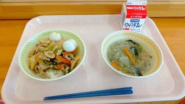 あんかけチャーハン、ポークシューマイ、、たたききゅうり、牛乳