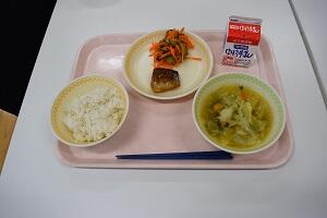 麦ご飯・牛乳・千切り大根の炒め煮・魚のみそ汁