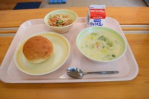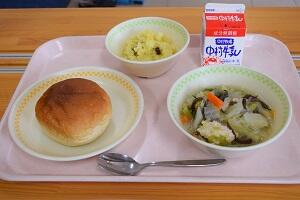 コッペパン・牛乳・白菜のクリーム煮・ねっこやさいのサラダ