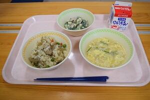 チキンライス・牛乳・野菜スープ・日向夏ドレッシングサラダ