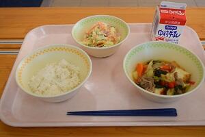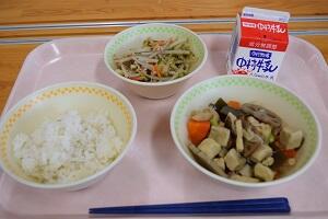 麦ご飯・牛乳・高野豆腐と昆布のいり煮・ごぼうサラダ