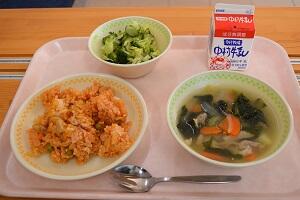 麦ご飯・牛乳・キムチ鍋・中華あえ