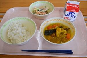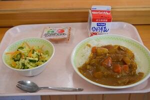 カレーライス・牛乳・チーズサラダ・りんごタルト