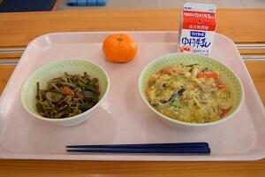 親子どんぶり・牛乳・きんぴらごぼう・みかん