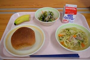紅芋パン・牛乳・みそラーメン・海藻サラダ・バナナ