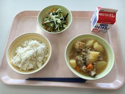 ミルクパン、牛乳、カレーうどん、ひじきのサラダ