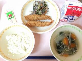 今日は、いわしに片栗粉を付けて揚げ、甘辛いタレを絡めました。調理員さんがカリッと揚げてくださったので、おいしく魚を食べることができました