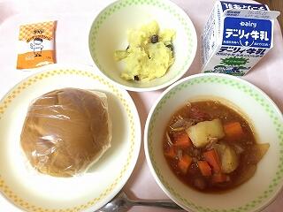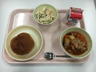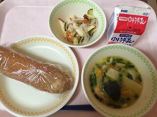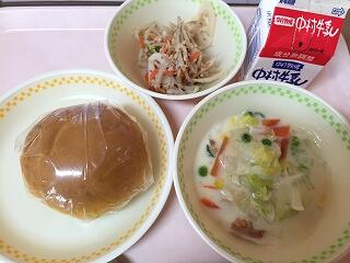 黒糖パン 牛乳 白菜のクリーム煮 ねっこやさいのサラダ