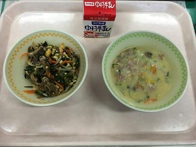 麦ごはん 牛乳 もずくスープ ごまだれ焼き肉