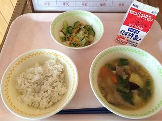 麦ごはん 牛乳 豚汁 ひじきの炒り煮