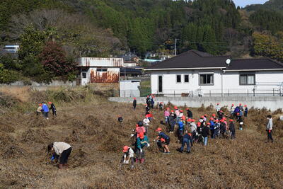 令和5年11月28日(火)に、5年生が大豆の収穫を行いました。