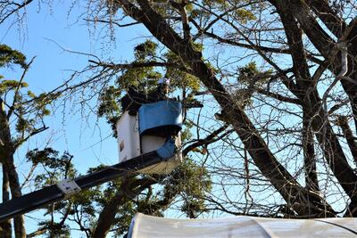 イチョウの木の枝の伐採作業