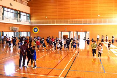 6年生の児童は、「留学生への質問」の時間では、日本の好きな所や食べ物、驚いたこと等、英語での質問にチャレンジしていました。また、留学生と「ジェスチャーゲーム」や「だるまさんがころんだ」をして遊び楽しい時間を過ごすことができました。
