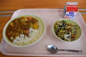 ポークカレーライス、れんこんサラダ、牛乳