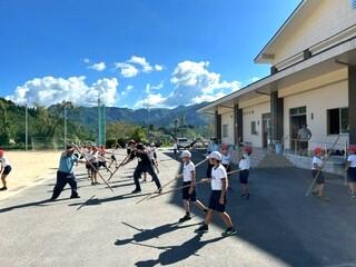 令和6年9月12日(木)の5・6校時に、4・5・6年生の児童を対象に神楽おどり(神楽・棒術・なぎなた)の練習が行われました。