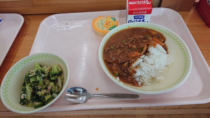 ドライカレー、ツナサラダ、バナナ、牛乳