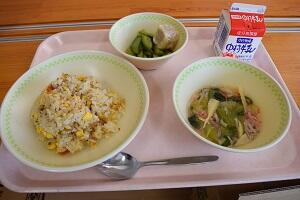 あんかけチャーハン、ポークシューマイ、、たたききゅうり、牛乳