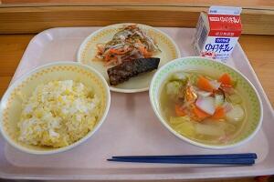 とうきびごはん、雑煮、かぶの紅白なます、ぶりの照り焼き、牛乳