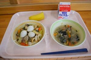 中華丼、春雨スープ、バナナ、牛乳
