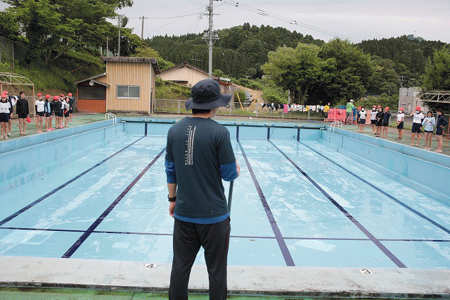 1年ぶりということで、プールのまわりには雑草や枯れ葉があり、プールにも砂などがたまっていました。