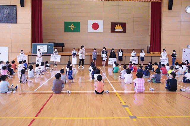 昼活動の時間は、全校集会がありました。