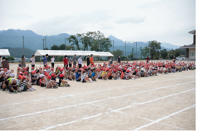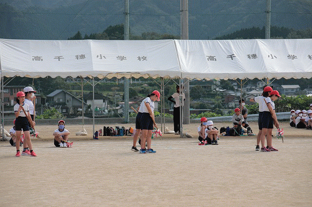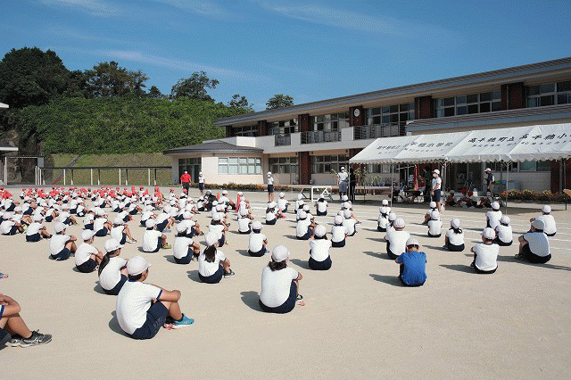 素晴らしい秋空のもと、子どもたちは立派な態度で練習を行いました。開・閉開式は、熱中症やコロナ感染症の対策の観点から、間隔を開け座って行います。