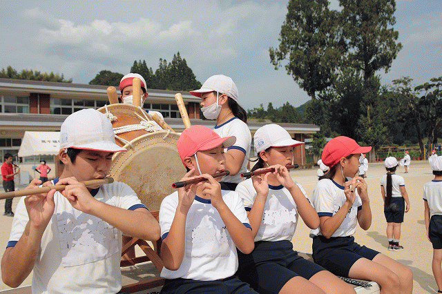 本日9月9日(木)の5・6校時に第1回神楽練習(5、6年生)を行いました。