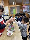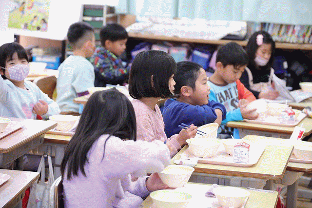 4校時が終わると給食です。本来ならば班を作って楽しく会話しながら食べるのですが、コロナの関係でみんな前を向いて黙食でした。来年こそは楽しく食べたいですね。