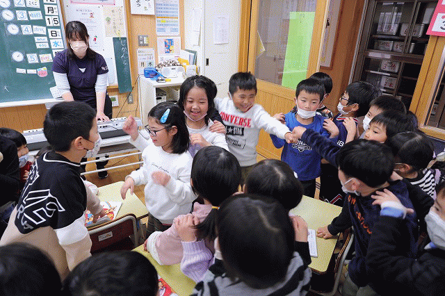5校時は、1年生と2年生は音楽、4年生は体育でした。