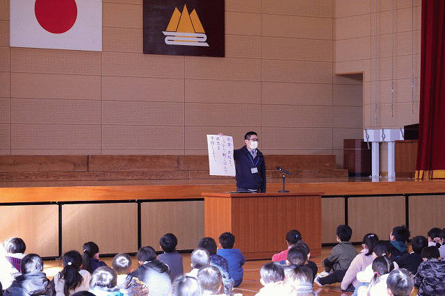 最後に、1月の目標を健康推進部の先生からお話がありました。「早ね、早おき、しっかり朝ごはんで病気をよぼうしよう。」が1月の目標です。ますます寒くなります。しっかり病気を予防したいですね。