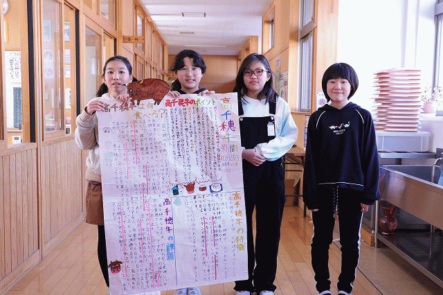 その中で、5年生の4人グループ「高千穂牛好きグループ」が作った壁新聞「高千穂牛新聞」が高千穂町長賞を受賞しました。