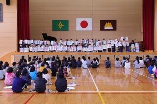 最後は6年生からでした。6年生は卒業式で歌う「3月9日」を歌ってくれました。とても素晴らしい歌声でみんな聞き入っていました。
