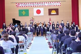 42名の卒業生のみなさん、卒業おめでとう。保護者の皆様、おめでとうございます。保護者の皆様だからこそ素晴らしい子供たちに育ち、このような素晴らしい式ができたと思います。職員一同、心より感謝申し上げます。本日は本当におめでとうございます。