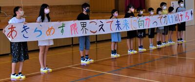 『あきらめず 限界こえて 未来に向かって かけぬけろ』
