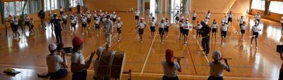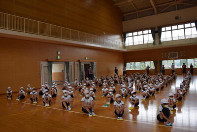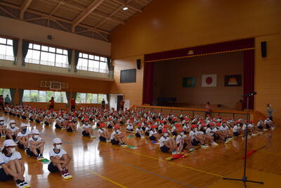 運動会の全体練習1回目がありました。あいにくの雨だったので、体育館で行いました。全体練習が始まると、子どもたちの運動会の雰囲気がさらに高まってくるようです。