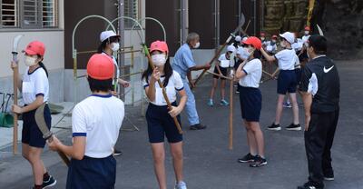 例年、運動会では地域の方々のご指導の下、3年生から6年生が「神楽、棒術、なぎなた、神楽歌」の披露をします。今年もまた披露をします。そのための練習も一生懸命に取り組んでいます。本番が楽しみです。