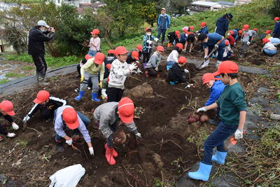 5月に苗を植えたおいもの収穫の時期になりました。たくさんのおいもを掘ることができました。今度は、このおいもを使った料理を2年生みんなで食べる予定です。