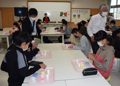 わたしたちは、食事をするときには、『味覚の5味(甘味、塩味、酸味、苦味、うま味)』だけでなく『視覚』や『臭覚』を使って食事を味わっていることを学びました。食の奥深さを学んだ子どもたちでした。