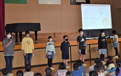 今月の全校集会は、久しぶりに体育館に集まって行いました。図書委員会の発表がありました。11月は、楽しい企画があるようです。子どもたちが、いつも以上に本を読んだり図書室に足を運んだりすることでしょう。