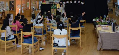2学期のお話会は、1・2年生向けのものでした。「読み聞かせ」「語り」「手遊び」等々、子どもたちを飽きさせない「えほん畑」の皆さんには、いつもながら感心してしまいます。