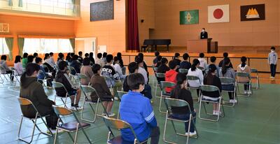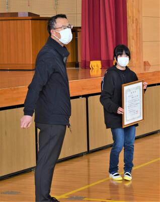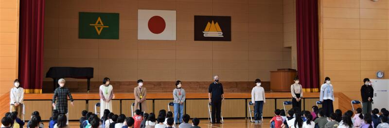 お別れ集会の最後に、PTA新聞「せせらぎ」のロゴの表彰式がありました。どんなロゴなのかは、「春号」で紹介されます。楽しみにお待ちください。