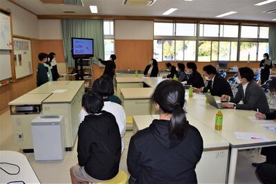 6年生は、総合的な学習の時間の中で、「高千穂町」について調べました。そして、自分たちで考えた『高千穂町の魅力の発信』について提言の場として、『町づくりミーティング』を行いました。この会には、町役場、町議会、町の主な事業所等、たくさんの方がお越しくださり、子どもたちの話を聞いてくださりました。