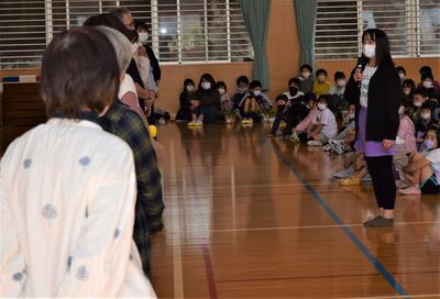 当日は、まず体育館で「お別れ集会」をしました。歌やダンス、クイズ、6年生の感謝の言葉など、趣向を凝らした学年の発表がありました。
