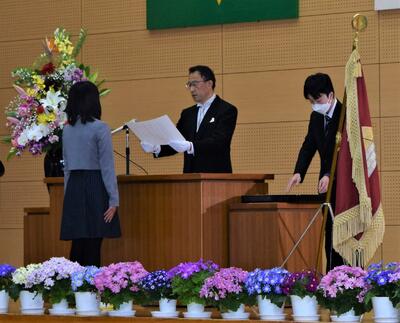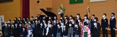 卒業式を行いました。53名の卒業生が、小学校を巣立ち、中学校へと旅立っていきました。
