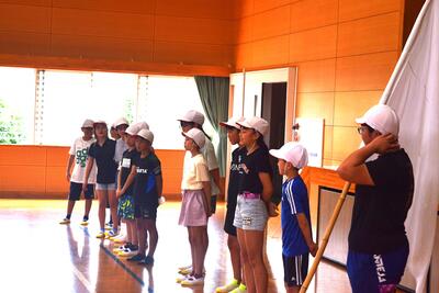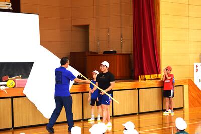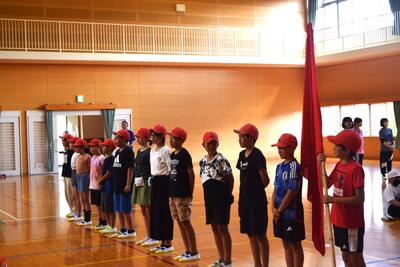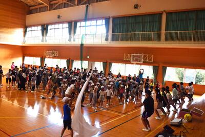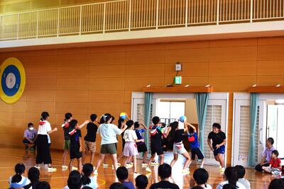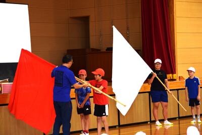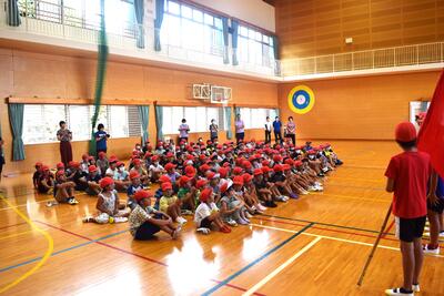 団の色決めでは、リーダーたちがボールゲームを競い合い会場を沸かせた後、くじを引いて団の色を決定しました。子どもたちの目は輝き、緊張の中にもワクワクした雰囲気で集会活動を行うことができました。